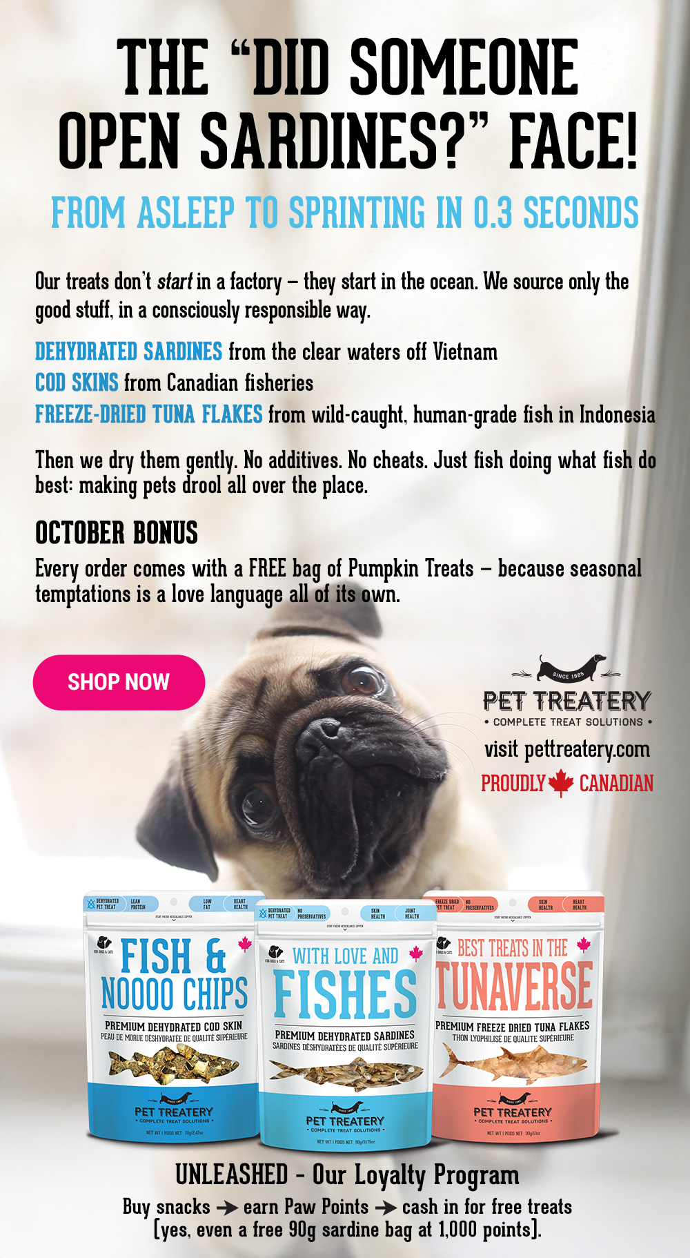 ? October bonus: Every order comes with a FREE bag of Pumpkin Treats — because seasonal temptations is a love language all of its own.